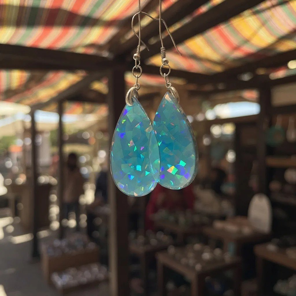 Designed for both beauty and comfort, the Aurora Tides Earrings feature a bold teardrop shape that elongates and flatters the face. They also feature a holographic surface that reflects a rainbow of shifting colors, ensuring your look always feels fresh, vibrant, and eye-catching. Lightweight construction allows you to enjoy them all day or night without discomfort. This makes them ideal for everyday wear or special occasions.