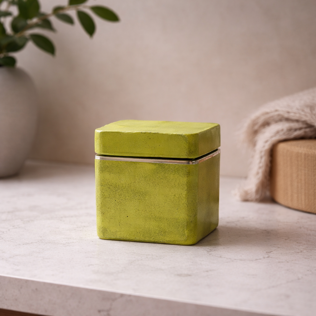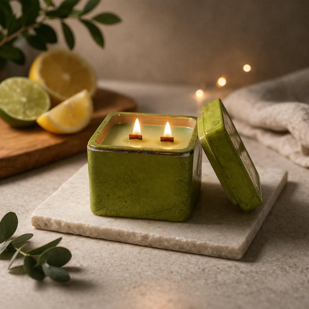 Every Citrus Haven candle is thoughtfully crafted by hand. We pour each one with care, using premium 100% soy wax or a soy  wax blend for a clean, even burn. The handmade green jar adds a touch of natural charm, perfect for gifting or adding a pop of color to your décor.