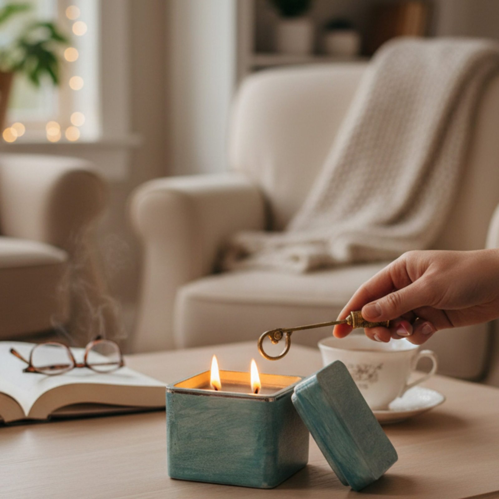 Each Neptune’s Mist candle comes in a handmade light blue cement vessel. The vessel reflects a soft and serene tone that pairs well with the fragrance. Moreover, every jar is hand mixed, hand cast, and sealed with care. Small natural variations in texture highlight the craftsmanship behind each piece. The calming blue shade fits well in bright, modern, or spa-like spaces.